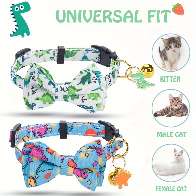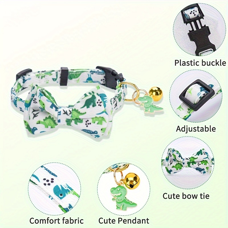 Adjustable Polyester Fiber Cat Collars with Animal Print, Bow Tie & Bell Pendant - CP627 Cute Pet Collar Set with Safety Buckle & Detachable Accessories