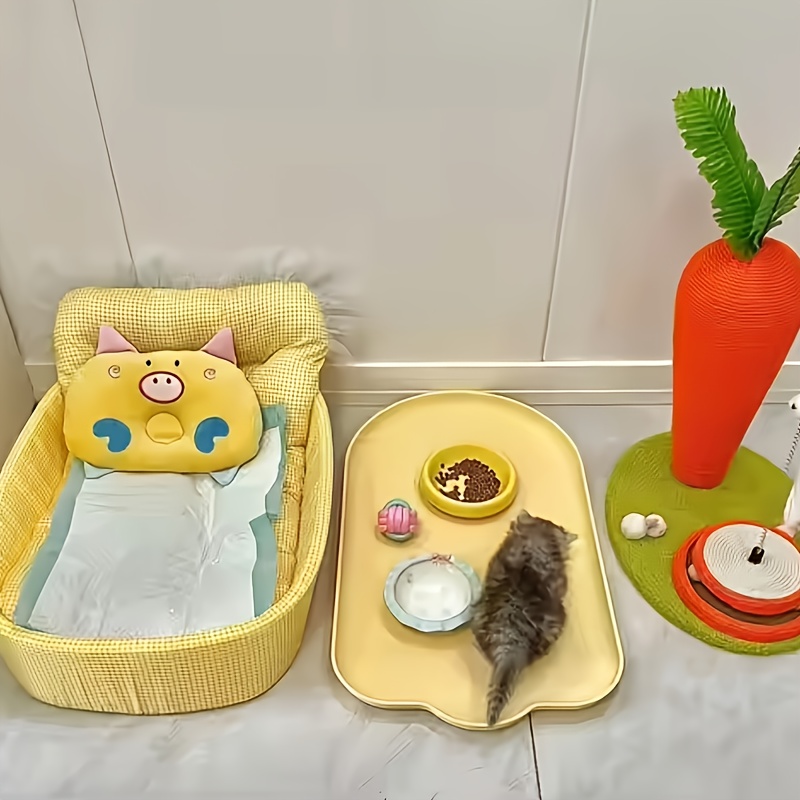 All-Season Pet Bed for Dogs & Cats - Checkered Small Bed with Soft Plush Fabric, Washable & Detachable Pet Mat, Non-Sticky to Fur, Easy to Clean, Ruffle Details - Cozy Sleeping for Indoor Cats & Small Dogs, Cat Bed, Playful D