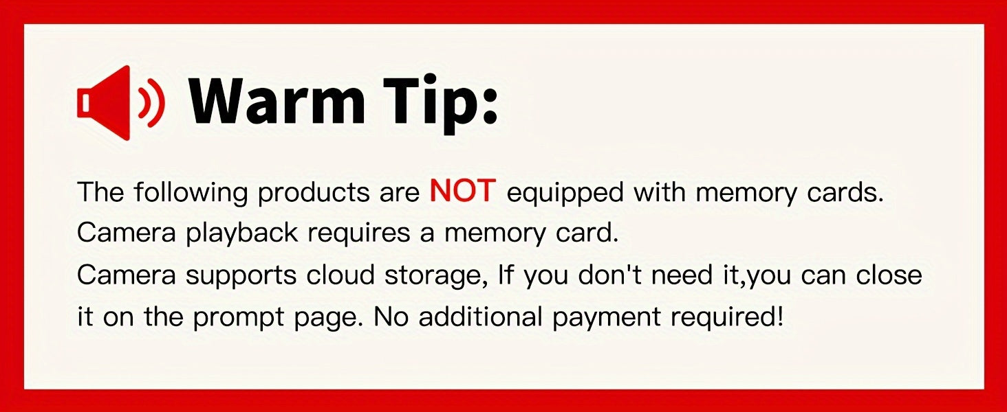 This surveillance camera offers free cloud storage for life (activation required via the app). It stores 12-second clips of motion events from the past 24 hours in the secure AWS cloud, enhancing security against theft or harm. Additionally, you can utilize a memory card (up to 128GB, not provided) or opt for our premium cloud service for ongoing recording.