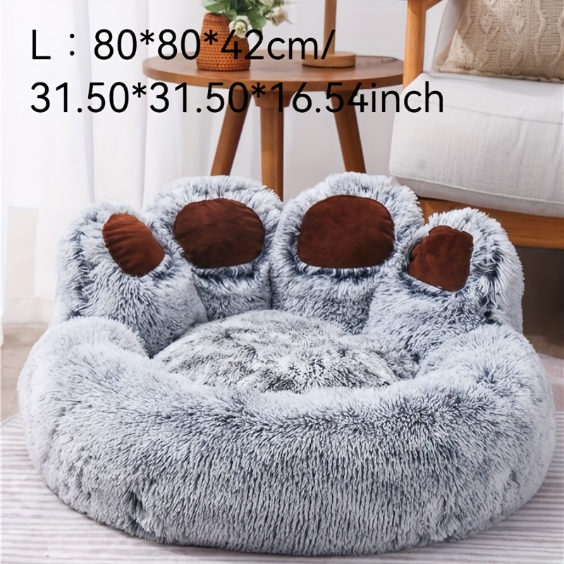 Cozy Bear Paw Plush Pet Bed - Warm, Comfortable & Washable Cat and Dog Nest for All Seasons