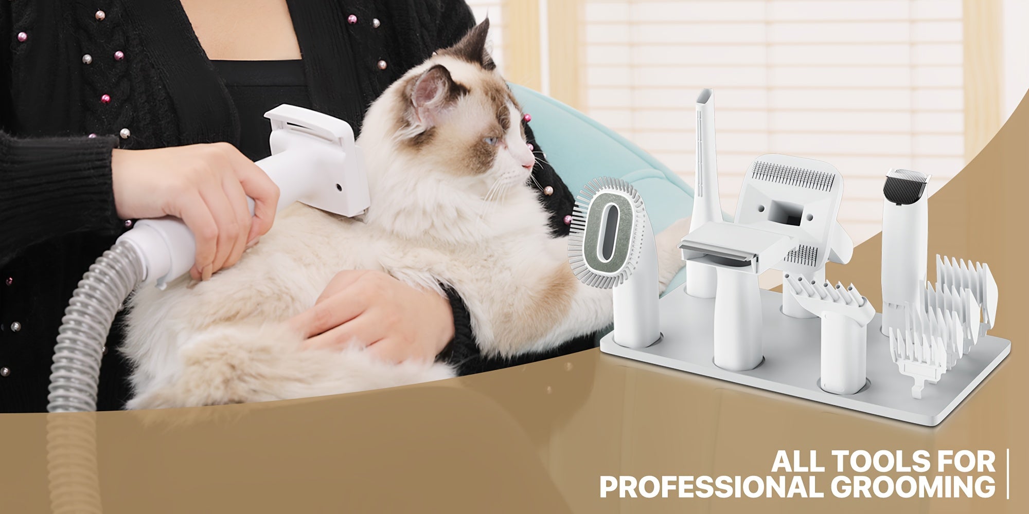 Dog Grooming Kit & Vacuum & Blow Dryer, Pet Grooming Vacuum with 6 Grooming Tools & Trimmer & Guide Combs, for Dog Cat And Other Animals