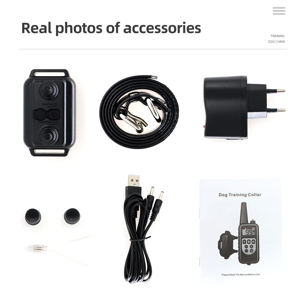 2.800m Electric Dog Training Collar Waterproof Pet Remote Control Rechargeable training dog collar with Shock Vibration Sound