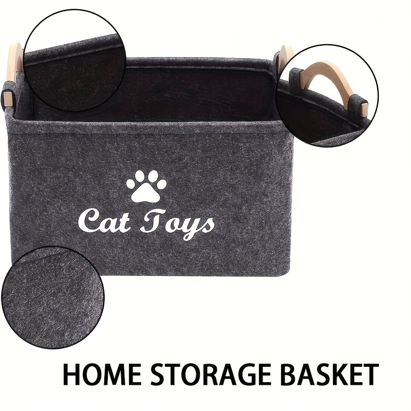 Foldable Pet Toy Storage Basket for Dogs & Cats - Durable Polyester with Paw Print Design, Wooden Handles, Ideal for Organizing Pet Playthings, Dog Toy Storage Basket