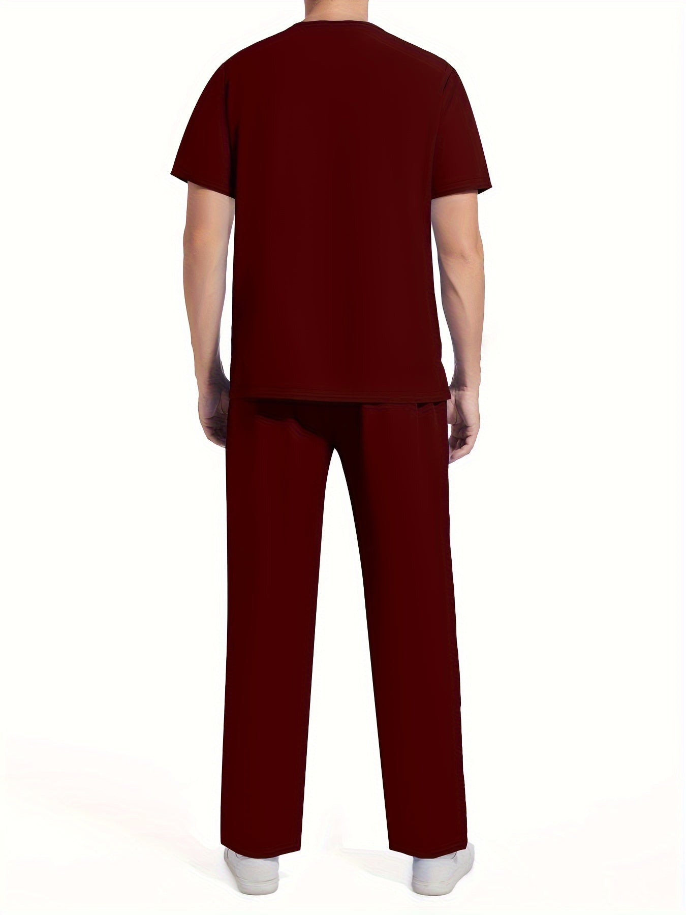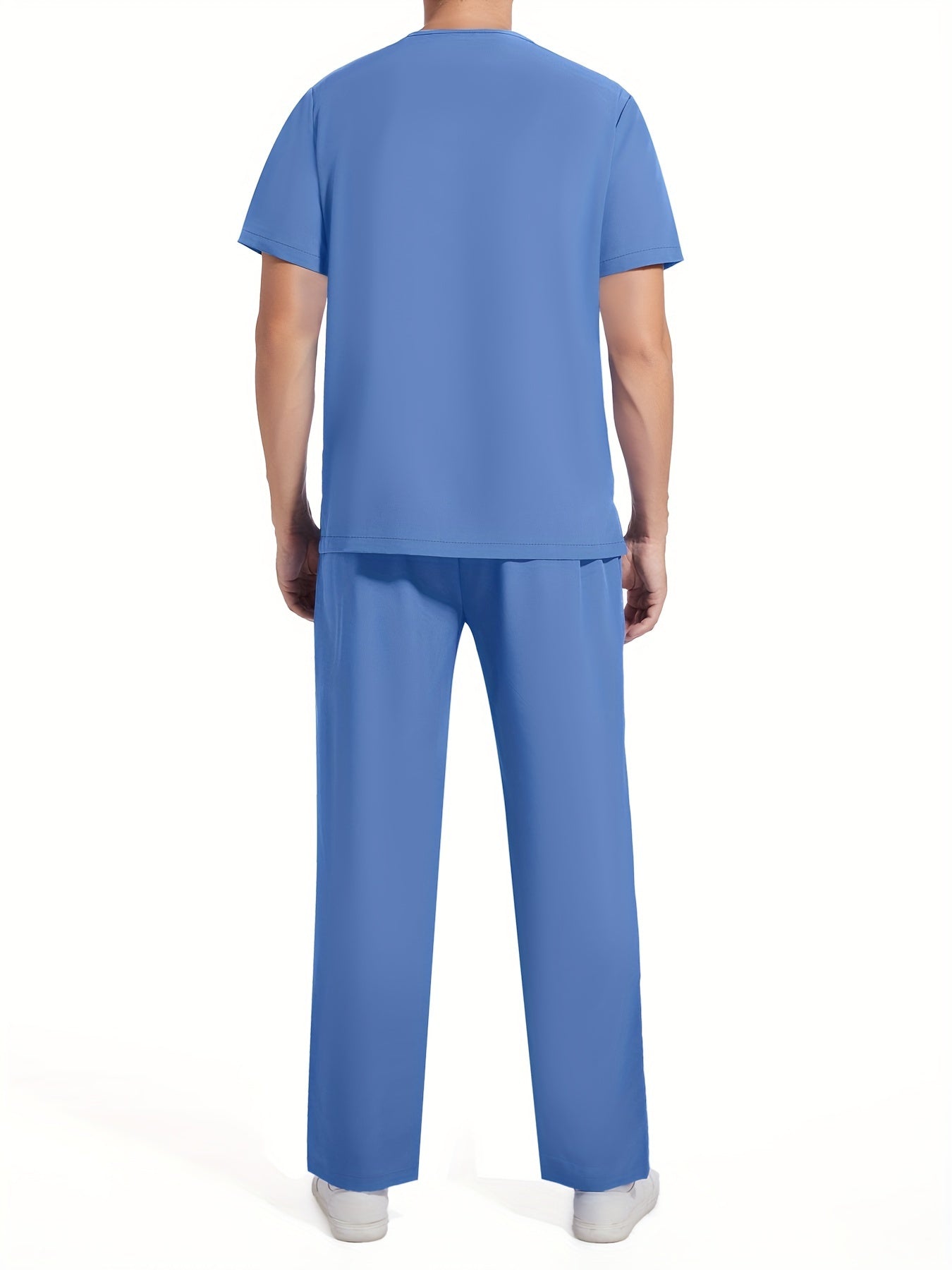 Men's Short Sleeve Summer Work Wear Set, Lab Coat, Pet Grooming Uniform, Breathable V-neck Top With Pockets And Long Pants Outfit