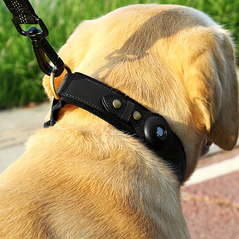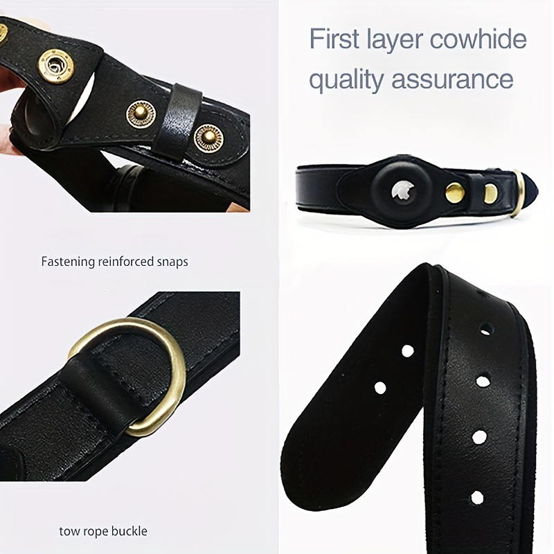 New leather airtag dog collar can be placed to locate the tracker pet collar head layer cowhide dog collar