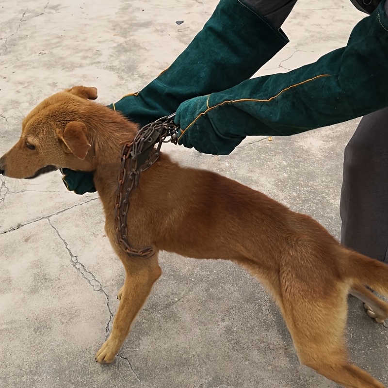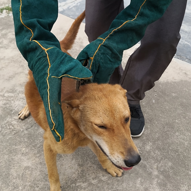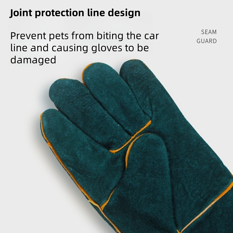 Premium Pet Grooming Gloves - Comfortable, Bite & Scratch Resistant | Ideal for Dogs & Cats, Green with Yellow Stitching