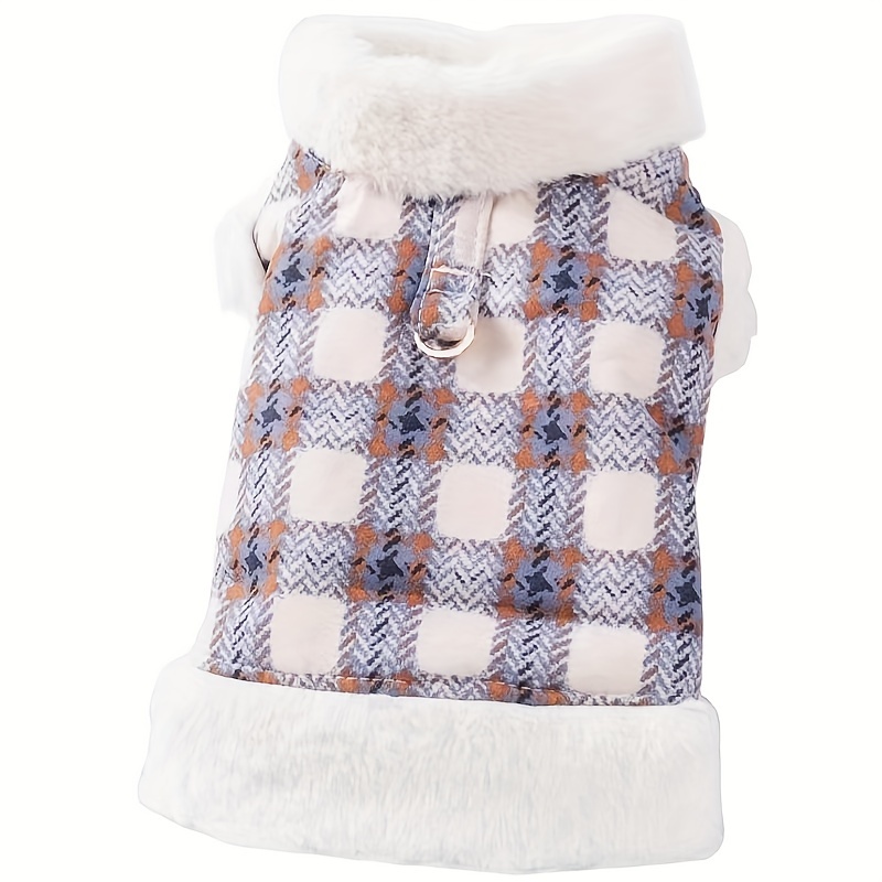 Quilted Plaid Dog Winter Coat - Super Warm, Ultimate Cold-Proof - With Traction Ring for Easy Handling - Perfect for Pets, Ideal for Chilly Days