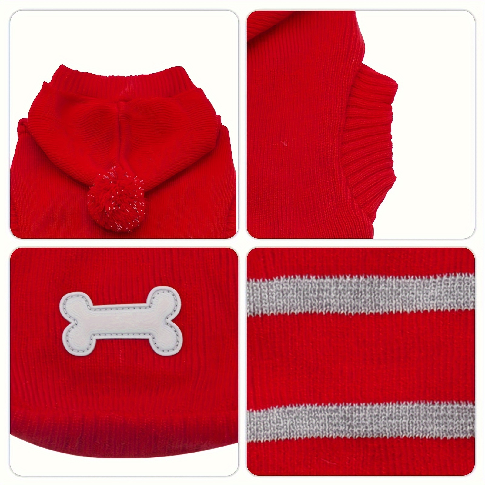 Reflective Bone and Stripe Pattern Dog Sweater, All-Season Knit Acrylic Pet Apparel, Machine Washable, Breathable Pullover for Small to Medium Breeds