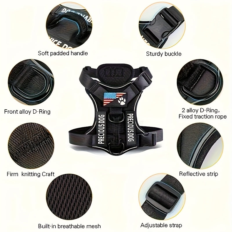Service Dog Harness, Reflective Dog Vest Harness with 5pcs Patches, Adjustable Soft Oxford Pet Harness, Inner Layer Mesh, Easy to Control for Small Medium Large Dogs Random Buckle
