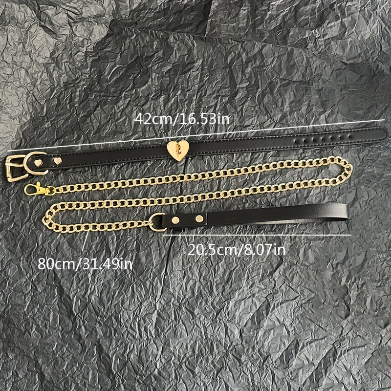 SUTEYI Leather Pet Collar and Leash Set with Heart Charm, Adjustable Fashion Collar for Small Dogs, Hand Wash Only - Black