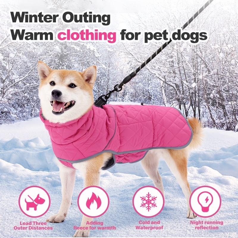 Waterproof Reflective Pink Fleece-Lined Dog Coat - Adjustable Cold-Resistant Pet Apparel with Leash Attachment - Ideal for All Breeds