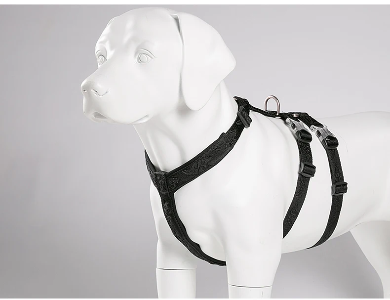 The pet harness is made of nylon yarn webbing, compared to ordinary nylon webbing, it is more softer and is not abrasive to the dog's skin, and this material making the straps of the pet